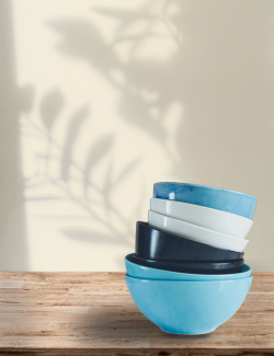 ‘Don’t worry about it,’ I say, although I know he isn’t listening. ‘Yesterday I had seven blue bowls, today I have six. That’s more than enough for one person.’